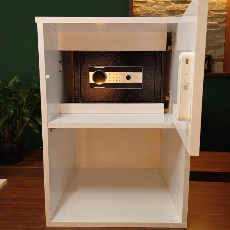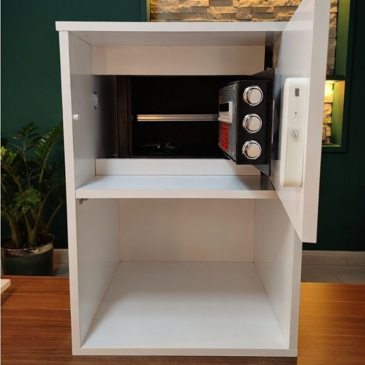NFC Kart İle Erişilen Komodin Kapağının Arkasında Parmak izli/ Şifreli / Anahtarlı Para Kasası Bulunmaktadır İster Parmak İzi İster Şifre İster Anahtar İle Açılabilir.