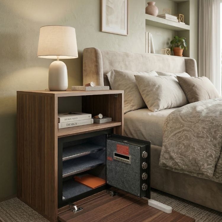 Gizli Bölmeli Komodin Ceviz– NFC & Anahtarlı Para Kasası | Kasatürk