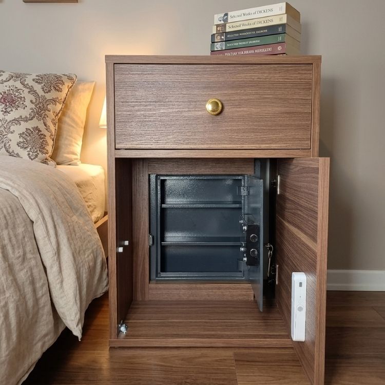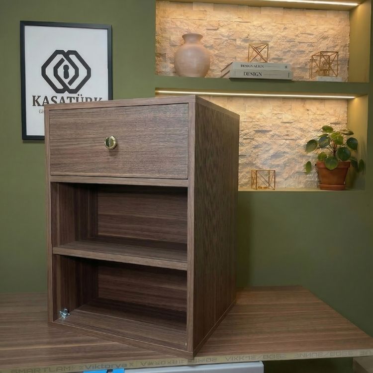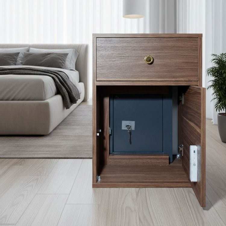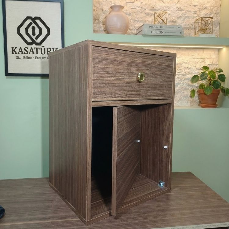 Gizli Bölmeli Komodin Ceviz– NFC & Anahtarlı Para Kasası | Kasatürk
