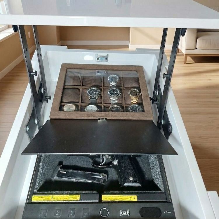 2 Adet Nfc Kart İle Korunan Gizli Bölmesi İçerinse Tabanca Kasası Ve Saat Kutusu Saklayan Bu Modelimizde Parmak İzi/Şifre Ve Pil Bitmesi Durumunda Acil Durum Anahtarı İle Açılabilen Bir Tabanca Kasası Bulunmaktadır. Kasamıza 21 Adet Parmak İzi Ve 21 Adet Şifre Tanımlayabilmektesiniz.
