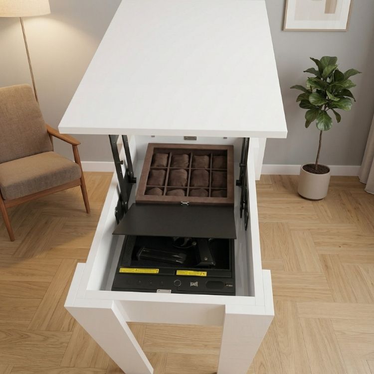 Gizli Bölmeli Masa Beyaz– NFC & Parmak İzli Silah Kasası | Kasatürk